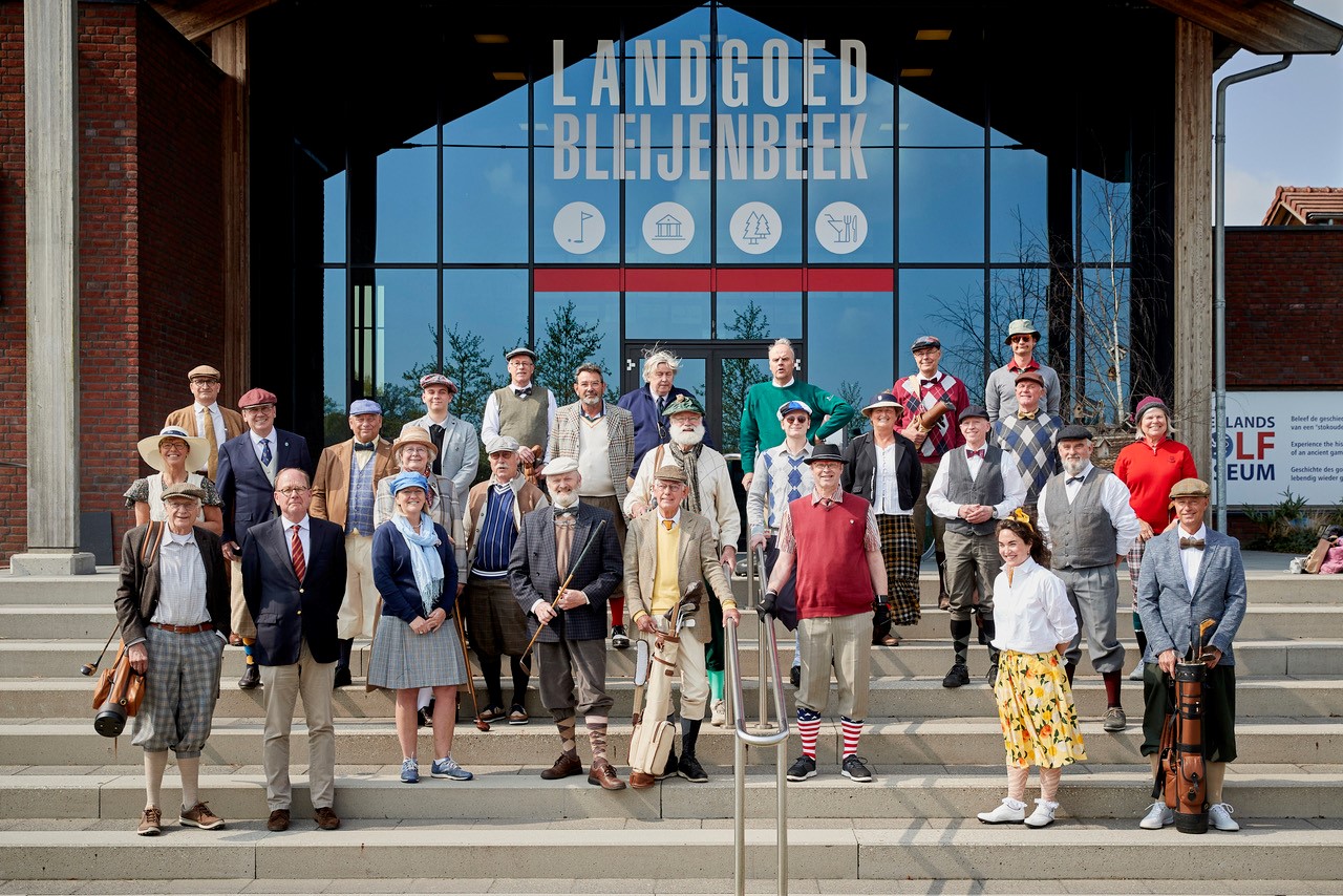 And indeed on Saturday 23 April, after the reception of all guests in a reunion-like atmosphere for many, the group photo could be taken in a radiant sun. The mood of the 26 historically dressed participants kept pace with the weather and at noon the pro Iain Forrester was the first to hit his 100-year-old brassie against the quickly departing ball. The second turn, I won’t name names, although Jan couldn’t help it, also showed an enthusiastically leaving ball, immediately followed by the head of the club, which had unintentionally separated itself from the wooden hickory shaft. Jan got a new brassie even before his tee on hole 2 and it lasted up to and including hole 18.