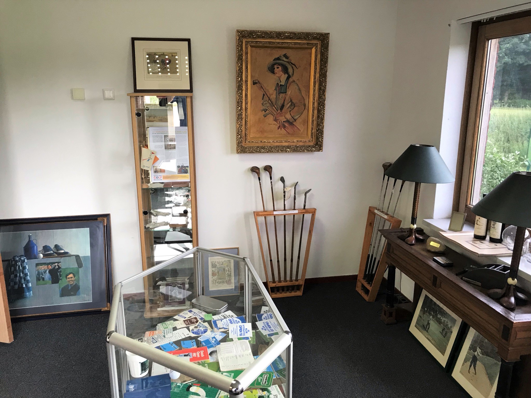 Not only the aforementioned painting of the golfing lady), but also her desk with various, often original golf attributes can be admired here. And of course her complete bookcase with golf regulations has also been added to our collection, creating a beautiful historical image of this.