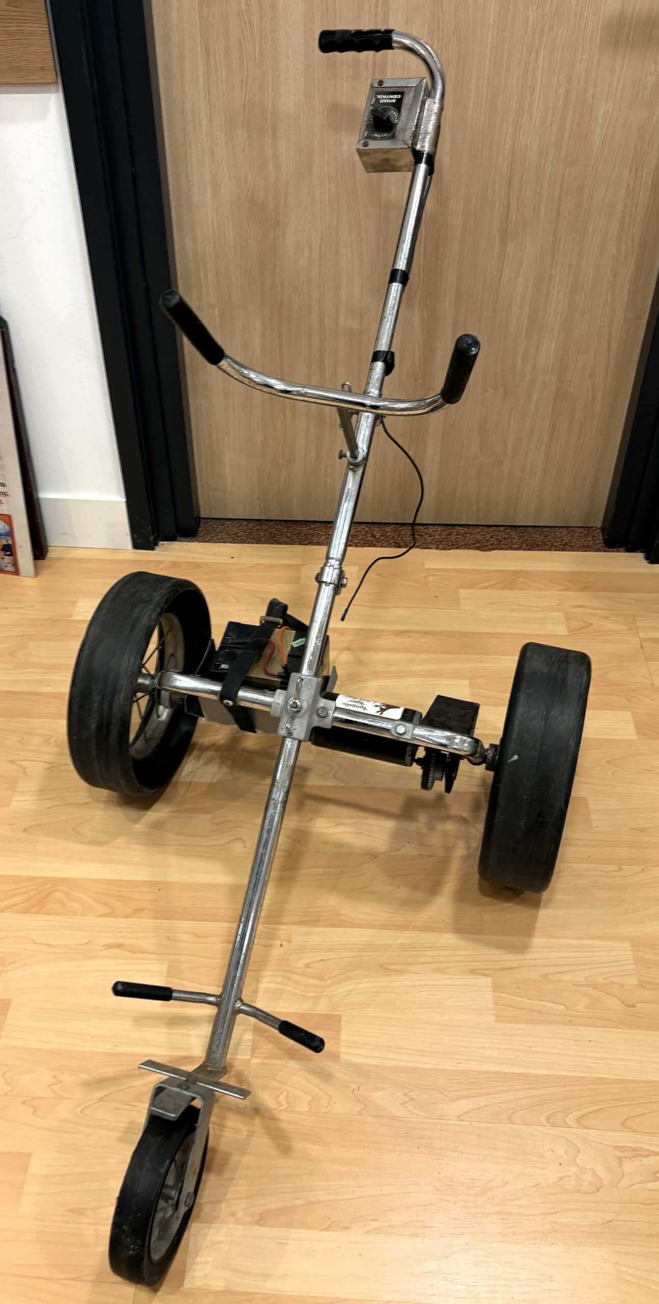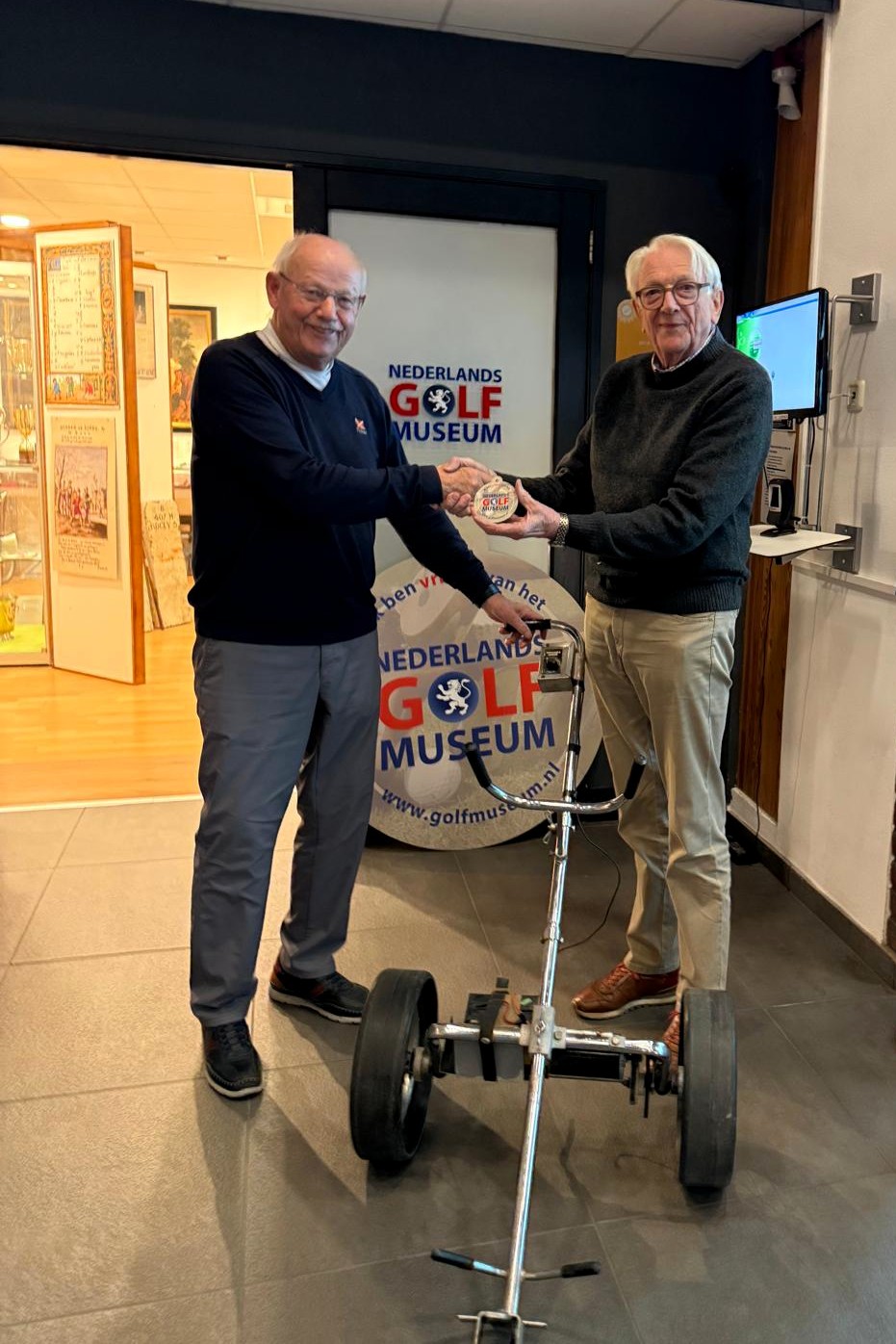 Afgelopen zondag kwam hij naar het Nederlands Golfmuseum om onder andere zijn elektrische golftrolley te schenken. De Kangaroo Katty van fabrikant Gan-Ed (Tryon, Noord-Carolina) was rond 1972 de eerste succesvolle, compacte (kofferbak), elektrische caddie (met losse accu) voor wandelende golfers.