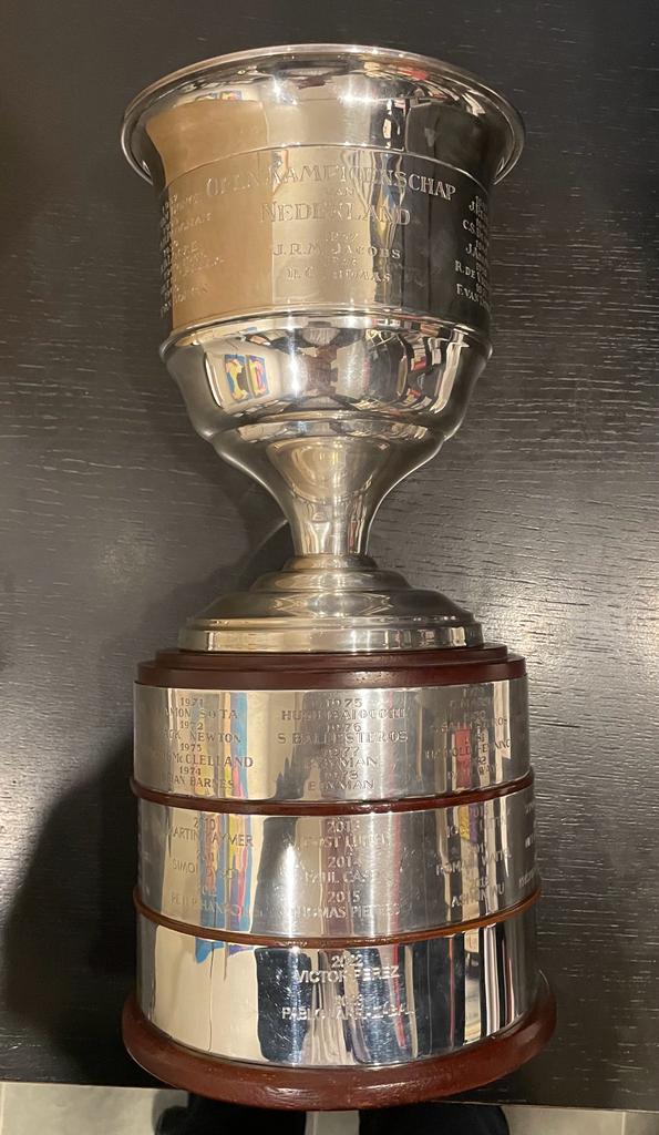 Met groot enthousiasme vierde Pablo het winnen van het KLM Open en trots hield hij de wisselbeker met de nieuwe derde ring in zijn handen. Maar toen stond zijn naam er nog niet als winnaar ingegraveerd. Nu wel en prijkt zijn naam onder Victor Perez , de winnaar van de vorige editie.