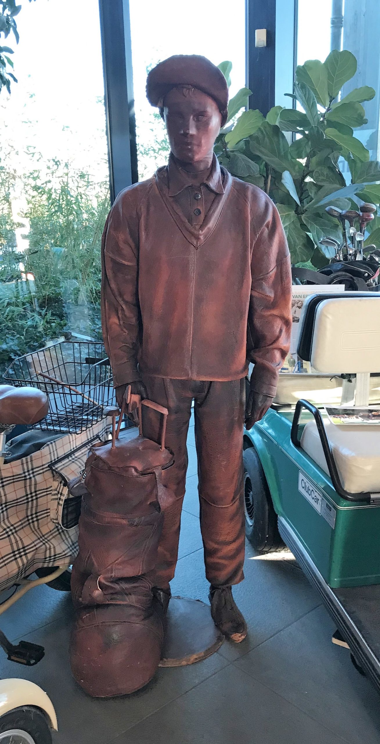 After the coffee and the tour of the golf museum (also quite interesting for them as non-golfers), Mrs. Kramp told me that they had taken over the leather doll from a shop in The Hague (probably a golf or curiosity store).