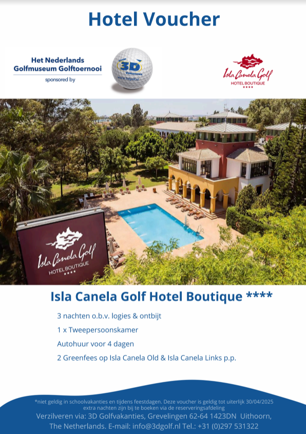 De Cup is een wisselbeker, maar de winnaar of winnares van deze beker gaat niet met lege handen naar huis. 3D Golfvakanties stelt als hoofdprijs een prachtige golfvakantie voor twee personen in Isla Canela Golf Hotel Boutique in Spanje beschikbaar (exclusief vlucht, maar inclusief autohuur en 2 greenfees per persoon, zie voucher). En natuurlijk zijn er nog veel meer andere prijzen te winnen.