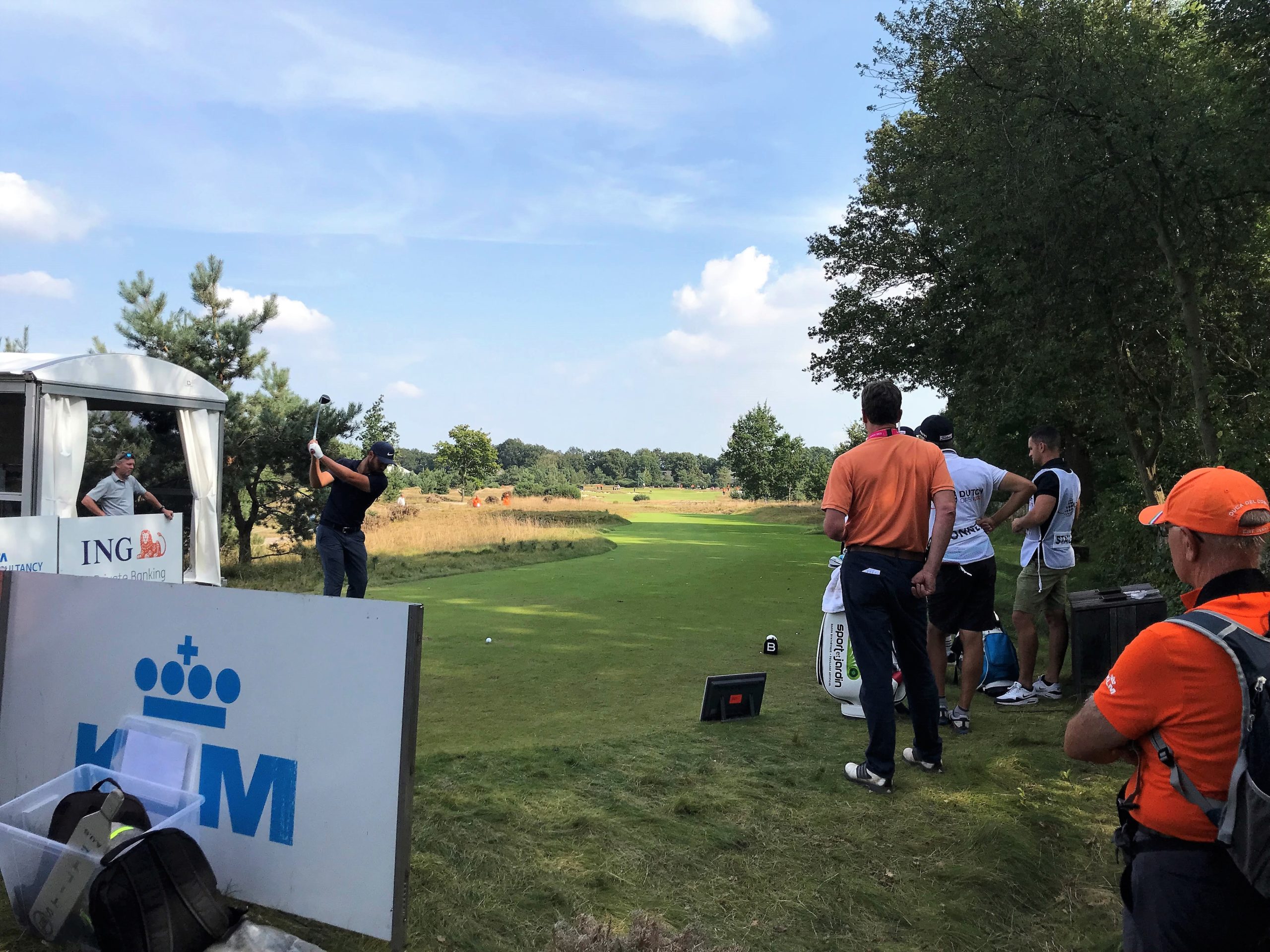 Aufgrund von Corona-Maßnahmen konnte das Niederländische Golfmuseum in dieser Ausgabe nicht im Sponsorendorf vertreten sein. Deshalb nutzten John, Ferd, Maria und Jacques die Präsentation des Dutch Open Pokals, um es zu einem Tagesausflug zu machen. Der schöne Bernardus Golf Golfplatz ist ein guter Ort, vor allem mit einer warmen Sonne über dem Kopf. Und mit bis zu 7.500 Zuschauern ist es sicher nicht zu voll, so dass man nah an allem sein kann.