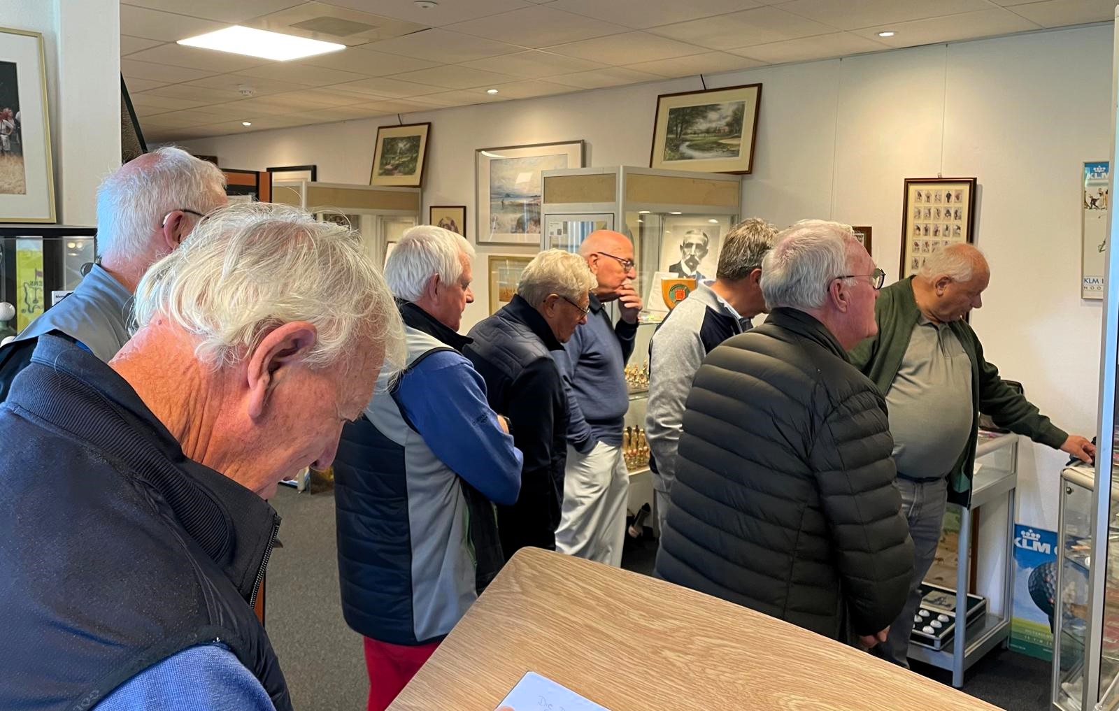 Toevallig vergadert het bestuur van het golfmuseum ook altijd op woensdag en uiteraard moeten er dan prioriteiten gesteld worden als een grotere groep het golfmuseum bezoekt. Voorzitter John Ott schorste de vergadering en heeft de bezoekers vervolgens door het golfmuseum rondgeleidt. Als bestuurslid Ferd dan ook nog later aansluit, moge het duidelijk zijn dat de bestuursvergadering behoorlijk uitliep.